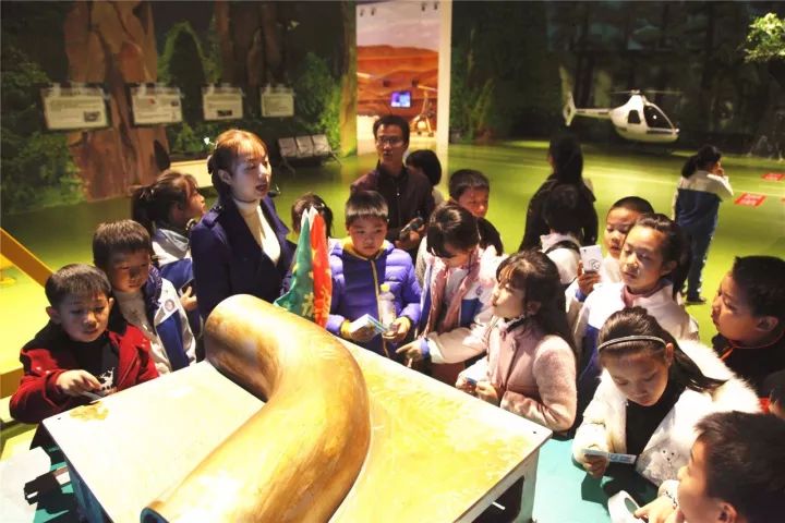 走进森林馆,首先吸引孩子们的是那葱葱郁郁的森林壁画,还有那通过投影模拟的瀑布飞流直下以及小鸟林间飞行的奇妙景象。森林馆为孩子们展示了直升机发动机结构及工装设备等科普知识。