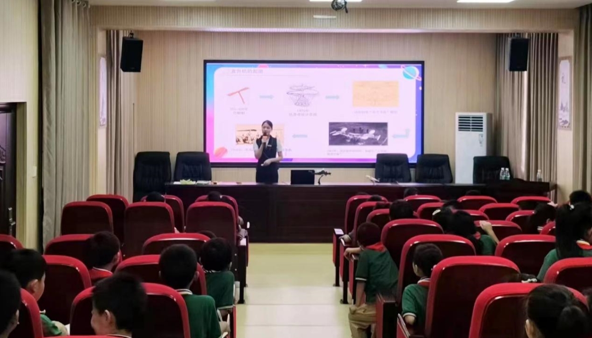 活动中,科普志愿者们为学生们详细介绍了直升机的发展历史、飞行原理、机型种类和用途,并现场展示了武直10、直20飞机等模型。同学们通过观看模型和现场听取讲解,了解了直升机的结构组成及直升机在运输、救援、国防、生产和生活等领域的重要作用。在讲座过程中,还设置了现场抢答互动环节,回答正确的同学可以获得一份小礼物。