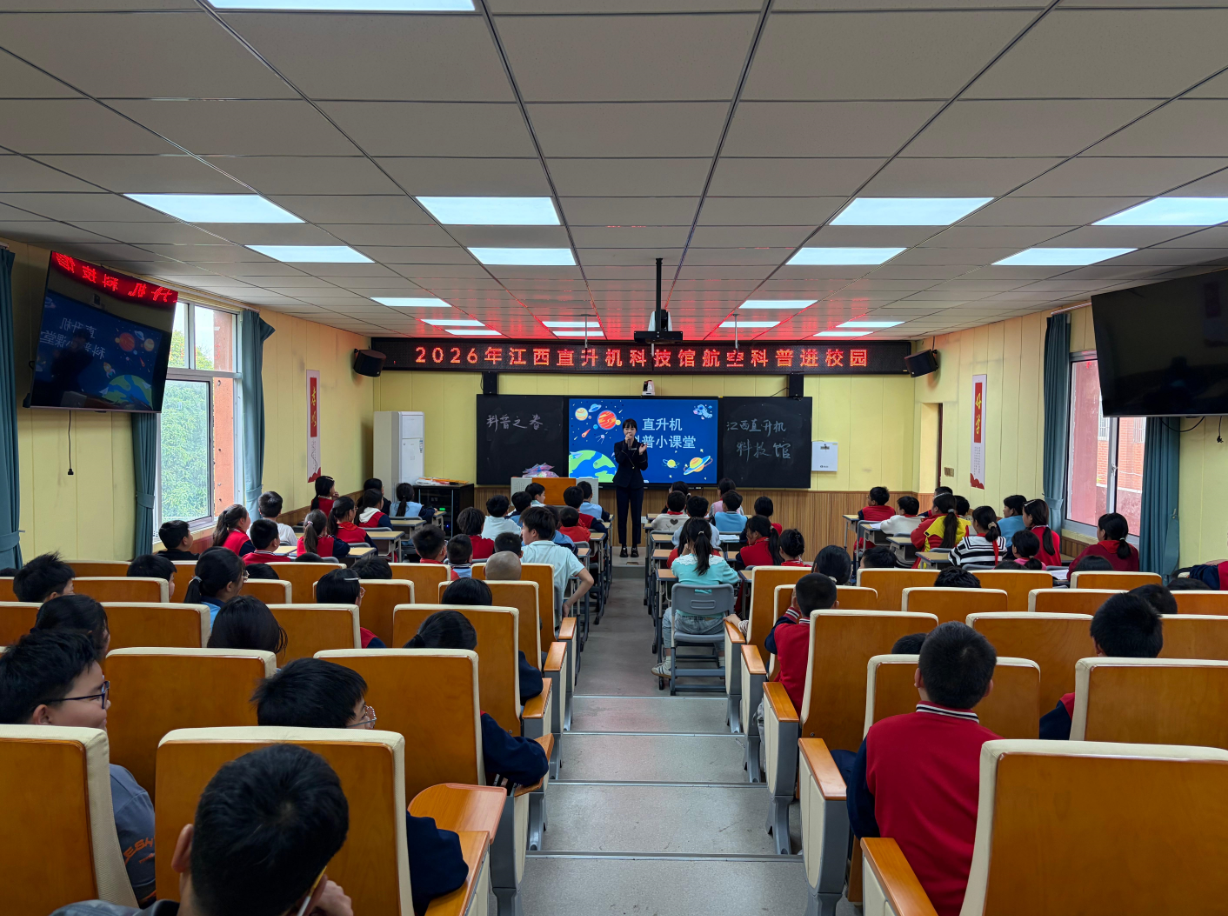 为弘扬科学精神,普及航空知识,激发青少年对航空科技的兴趣与热爱,2026年3月25日至4月8日,江西直升机科技馆组织开展了“科普之春——航空科普进校园”系列活动。活动先后走进峙滩学校、凯旋幼儿园、丽阳镇中心小学、余家希望小学四所学校,惠及学生近500人,取得了良好的科普效果和社会反响。